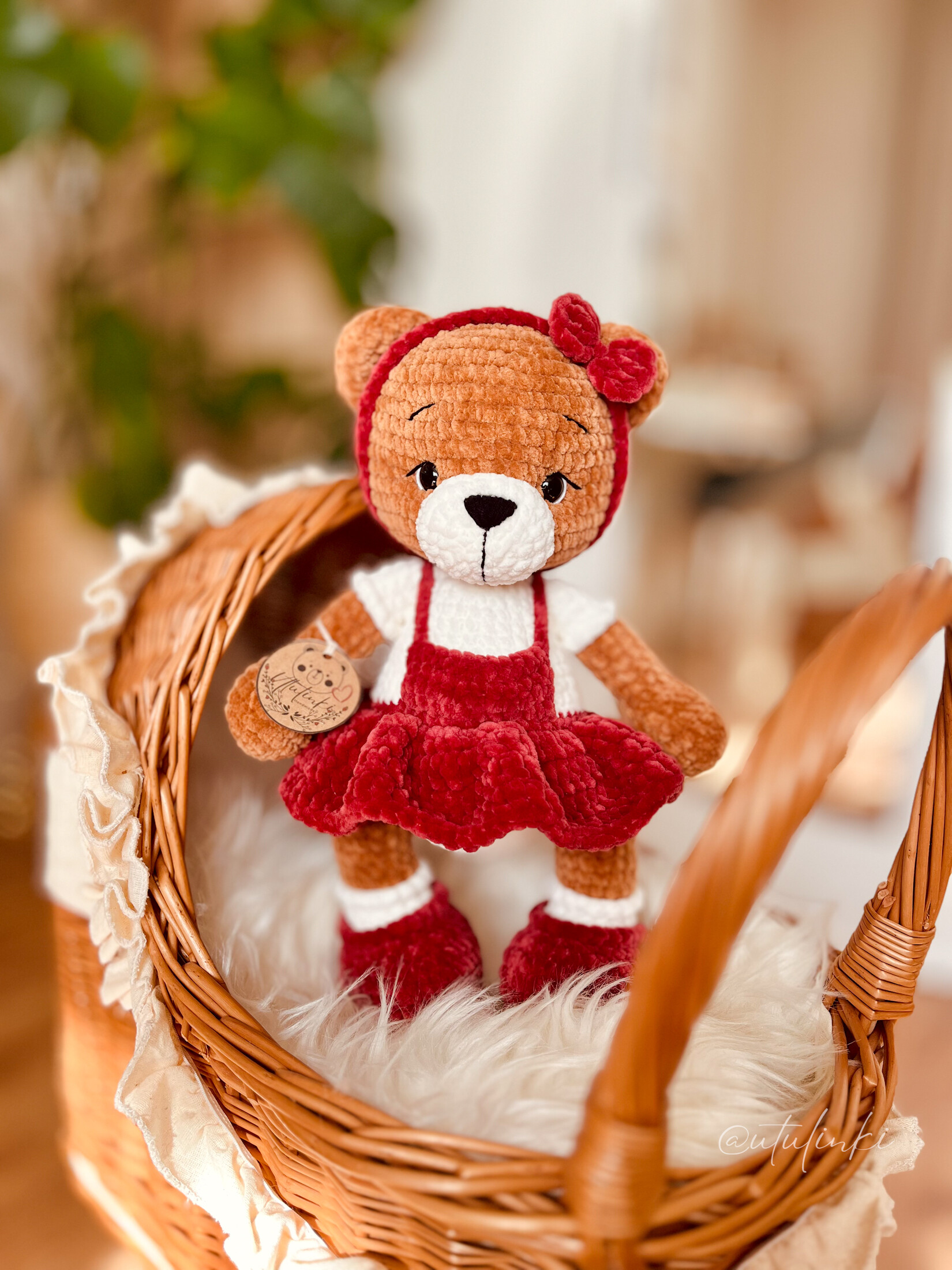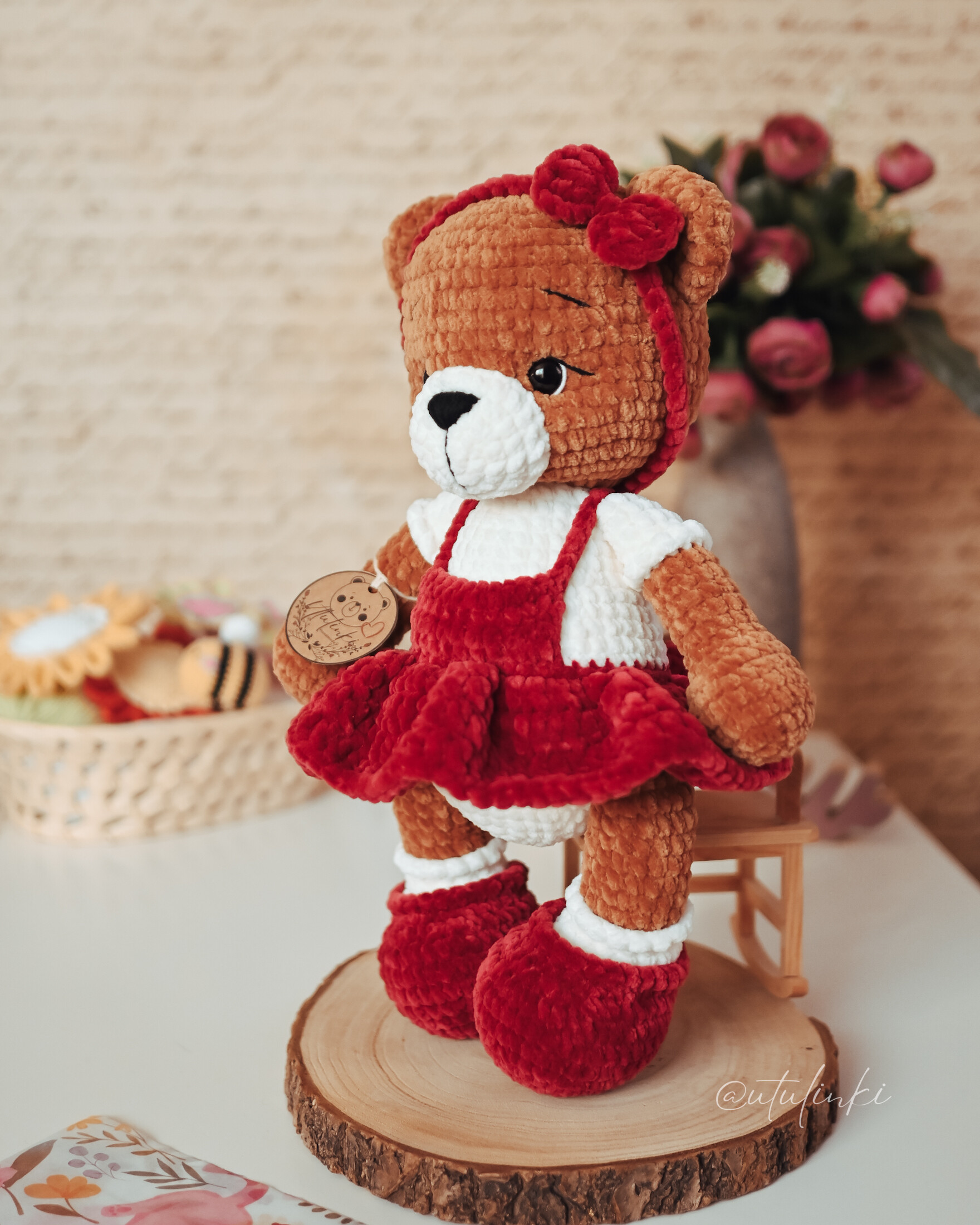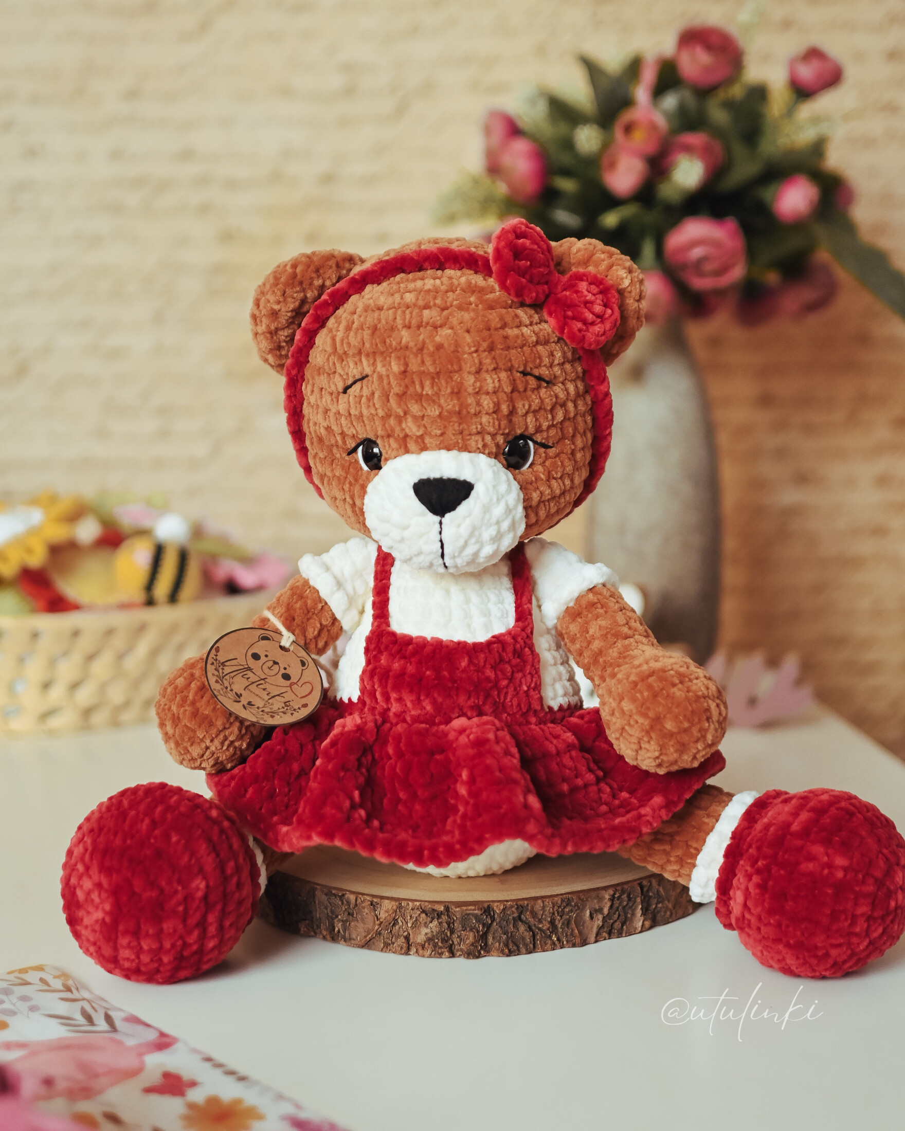 Poznaj uroczego misia, który skradnie serca małych i dużych! Ręcznie wykonany na szydełku z dbałością o każdy szczegół, ubrany w stylową sukienkę. To nie tylko zabawka - to wyjątkowy dodatek, który wniesie do domu odrobinę ciepła, humoru i przytulności.