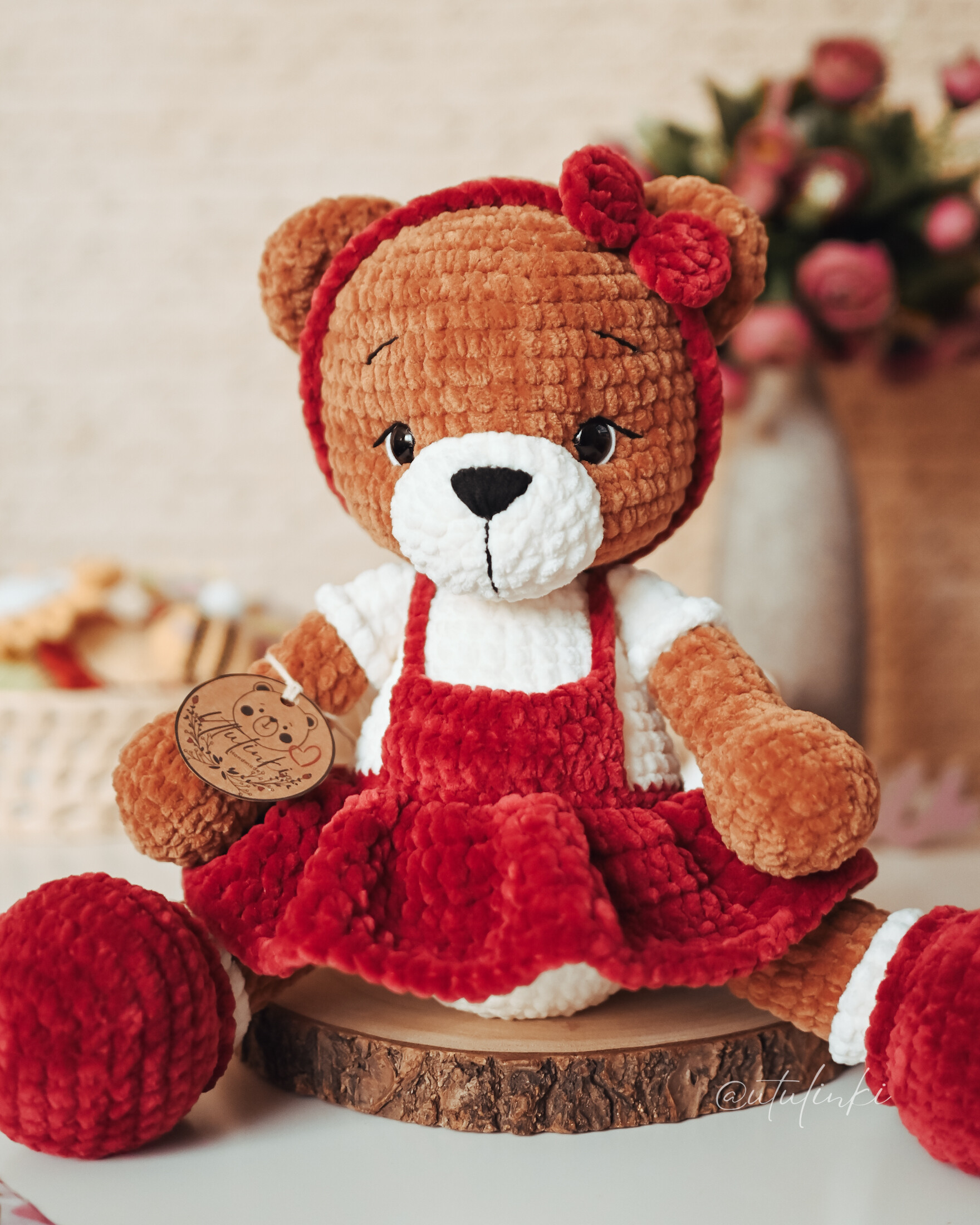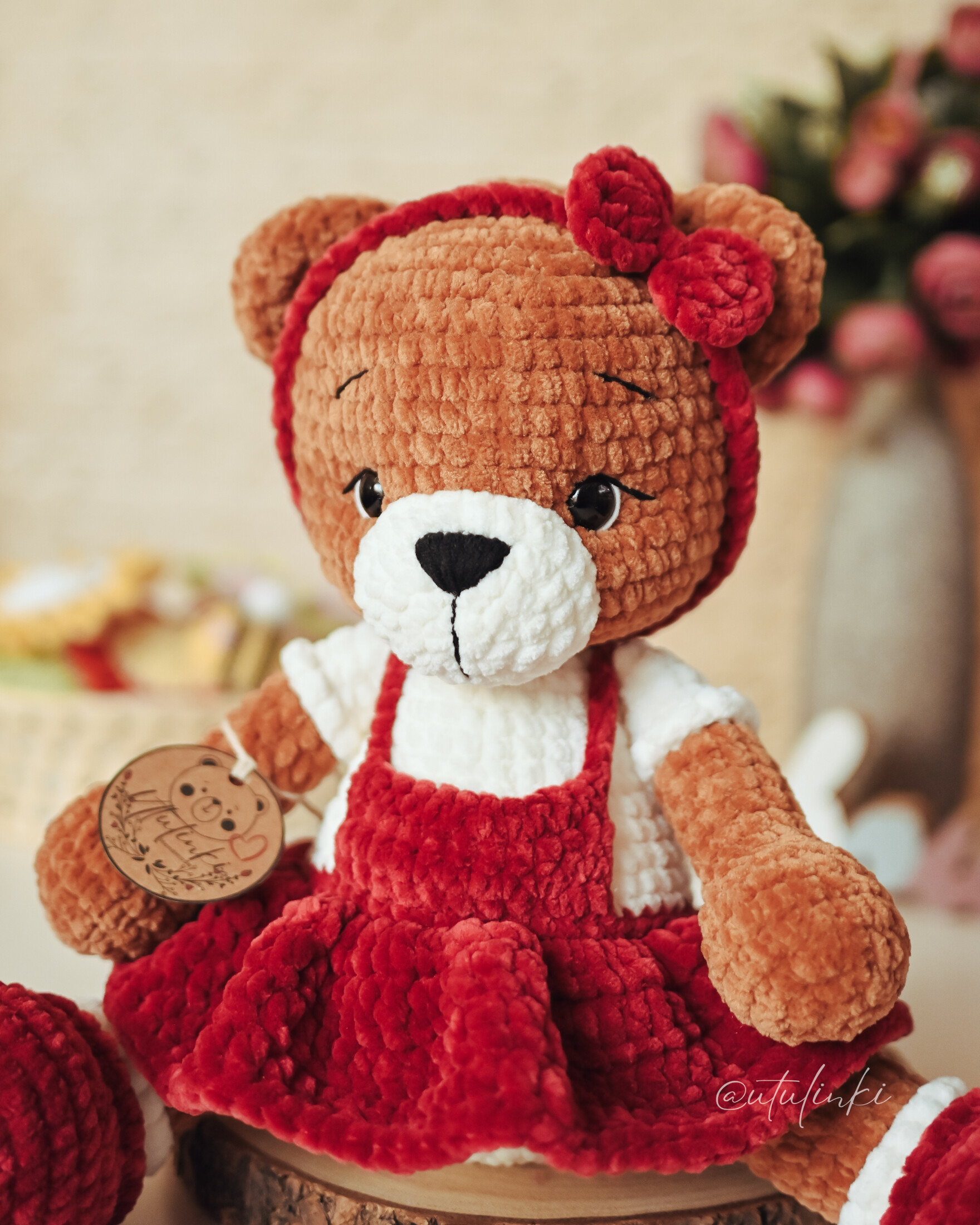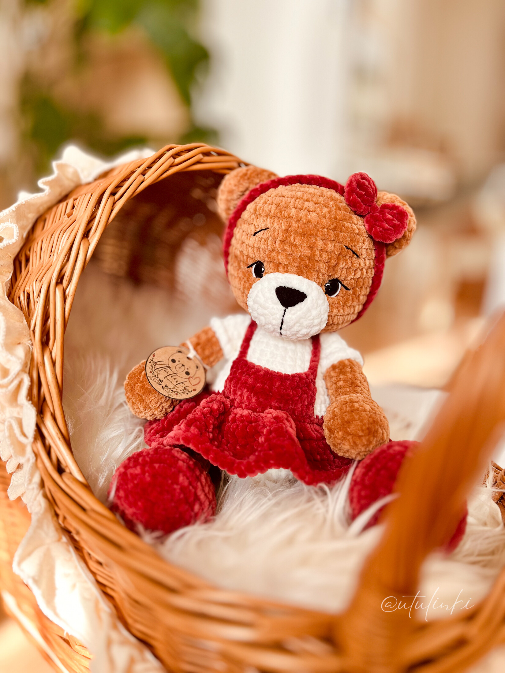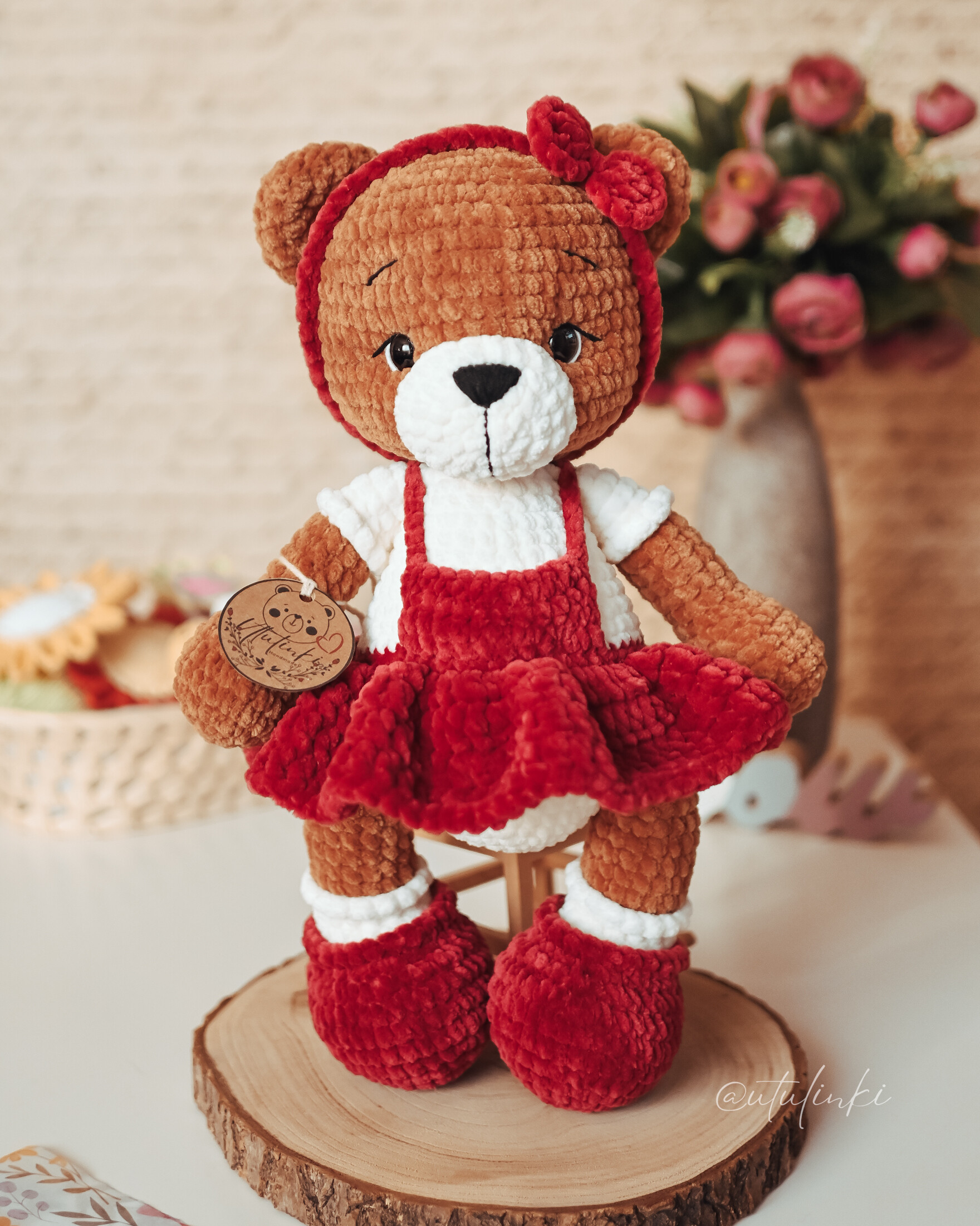 Poznaj uroczego misia, który skradnie serca małych i dużych! Ręcznie wykonany na szydełku z dbałością o każdy szczegół, ubrany w stylową sukienkę. To nie tylko zabawka - to wyjątkowy dodatek, który wniesie do domu odrobinę ciepła, humoru i przytulności.